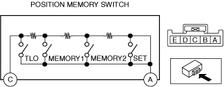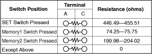 3. Verify that the resistance and continuity between the position memory switch terminals is as indicated in the table.