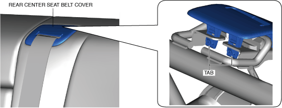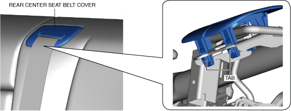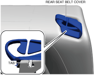 13.Pull the rear seat belt cover in the direction of the arrow shown in the figure to detach the tab from the rear seat back frame.