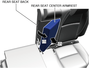 11.Move the rear seat center armrest in the direction of arrows (1) and (2) and remove it.