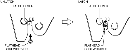 • When inspecting the latch condition of the trunk lid latch switch, press in the latch lever using a flathead screwdriver and set it to the latched position.