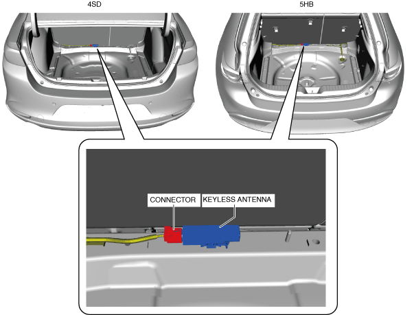• Disconnect the connector while holding the keyless antenna, otherwise the keyless antenna bracket could be damaged.