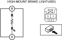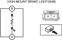 3.Apply battery positive voltage to high-mount brake light terminal B, and connect the ground to terminal A.