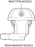 • If the nozzle angle is adjusted with excessive force by inserting a needle or similar thin tool into the rear washer nozzle, it could damage the nozzle internally. When adjusting the rear washer nozzle, be careful not to apply excessive force.