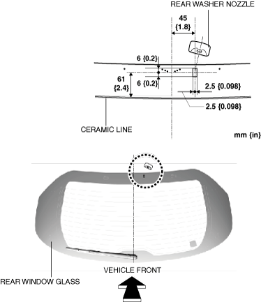 4.Insert a needle or similar thin tool into the rear washer nozzle and adjust the area where washer fluid is sprayed as shown in the figure.
