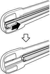 2.Pull the windshield wiper blade rubber in the direction of arrow and slide it to a position where the blade holder groove can be checked.