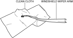 • If the windshield wiper arm end is placed directly on the windshield after removing the windshield wiper blade, it could scratch the windshield. If the windshield wiper arm end is to be placed on the windshield, place it on a clean cloth to protect the windshield.