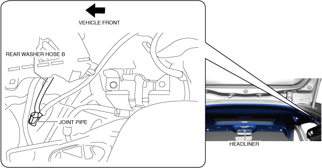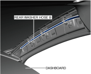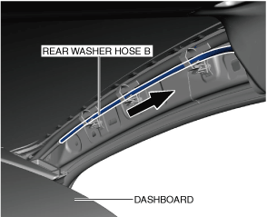 4.Pull the roof wiring harness and rear washer hose B in the direction of the arrow shown in the figure and pull them out.