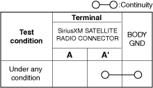 3.Verify that the continuity between the center roof antenna terminals is as indicated in the table.