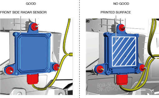 1.Install the front side radar sensor with the printed surface pointed towards the front bumper face.