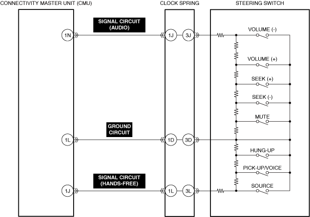 INSPECT STEERING SWITCH, CLOCK SPRING, AND CONNECTIVITY MASTER UNIT (CMU) CONNECTORS FOR MALFUNCTION