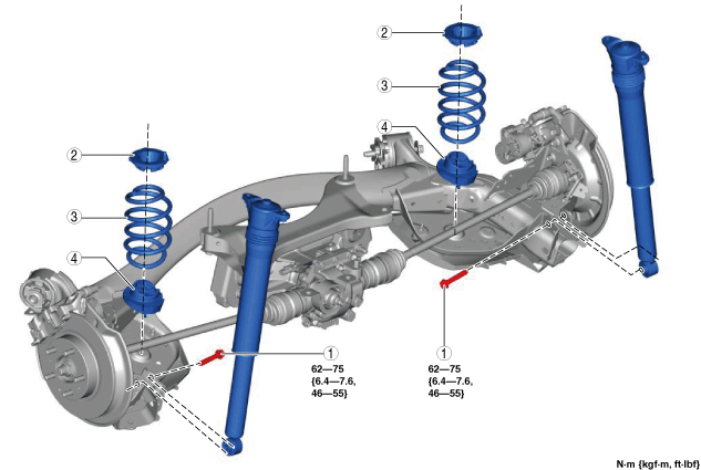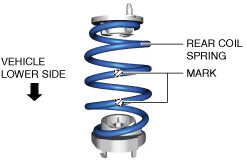 1.Install the rear coil spring with the mark facing the vehicle lower side.