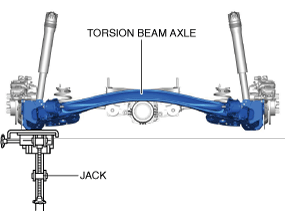 • If the torsion beam axle falls off while it is removed/installed, it may cause serious injury or death, or vehicle damage. Always use a jack when removing/installing the torsion beam axle and verify that it is securely supported.