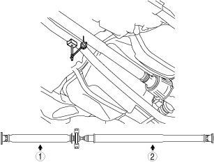 2.Rotate the rear wheel by hand and inspect the propeller shaft runout at the two locations shown in the figure.
