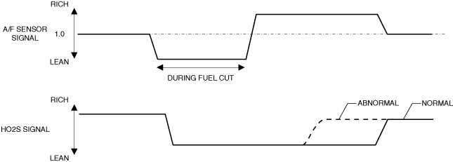 • The PCM detects that the HO2S output fluctuates from lean to rich in a short amount of time at specified times continuously after recovery from fuel cut control.