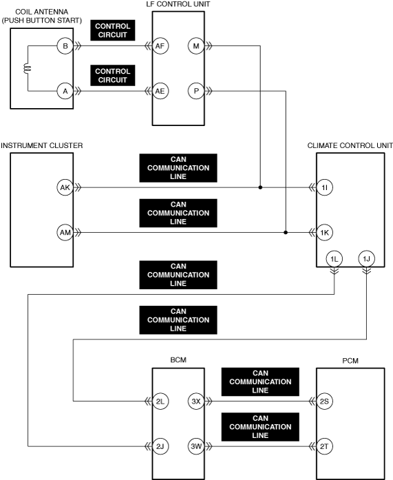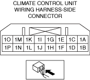 • Climate control unit terminal 1L—Body control module (BCM) terminal 2J