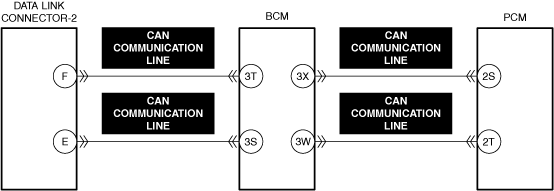 • Body control module (BCM) terminal 3W—PCM terminal 2T
