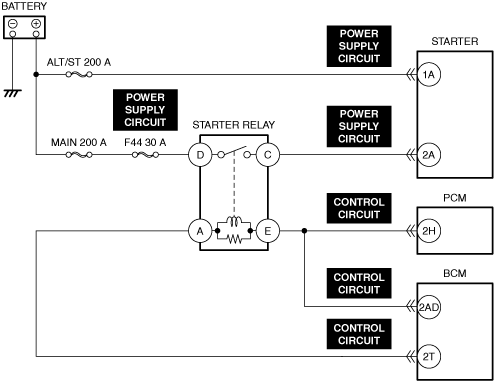 INSPECT STARTER RELAY POWER SUPPLY CIRCUIT FOR SHORT TO GROUND AND OPEN CIRCUIT