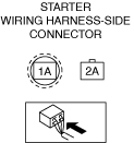 • Measure the voltage at the starter terminal 2A (wiring harness-side)
