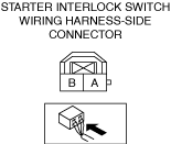 • Short the starter interlock switch terminals A and B (wiring harness-side) using a jumper wire.