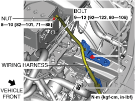 9.Remove the bolts and nut shown in the figure, and set the wiring harness aside.