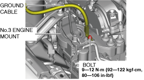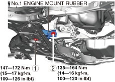 12.Tighten the No.1 engine mount rubber installation bolts.