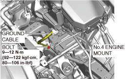 8.Temporarily tighten the No.4 engine mount bracket installation bolts.