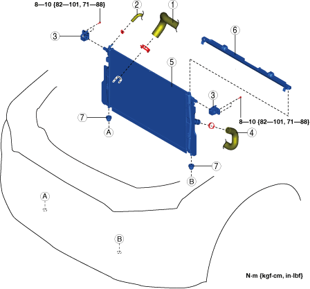 2.Lift the radiator and remove it from the radiator installation holes on the shroud panel.