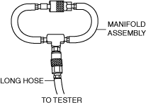 - (3)Connect the manifold assembly (part of tester) to the long hose as shown.