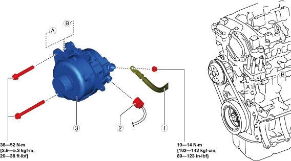 • Remove and install all parts when the engine is cold, otherwise they can cause severe burns or serious injury.• When the battery terminals are connected, touching the vehicle body with generator terminal B will generate sparks. This can cause personal injury, fire, and damage to the electrical components. Always disconnect the negative battery terminal before performing the following operation.