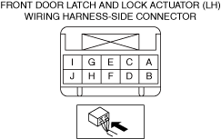 INSPECT FRONT DOOR LATCH AND LOCK ACTUATOR (LH) CONNECTOR CONDITION