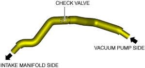 2.Blow air into the vacuum hose from the vacuum pump side using your mouth and verify that the air flows to the intake manifold side, then blow air from the intake manifold side and verify that the air does not flow to the vacuum pump side.