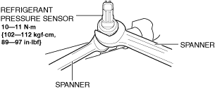5.Loosen the refrigerant pressure sensor using two spanners.