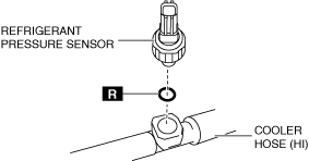 • The refrigerant pressure sensor No.2 is located in the cooler hose (HI).