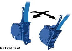 5.While pulling the seat belt out, make sure that the seat belt does not lock when the retractor is tilted slowly up to 15° from the mounted position and locks when the retractor is tilted 40° or more.