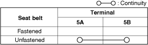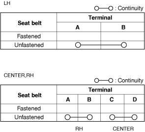 5.Inspect for continuity between the buckle switch terminals using a tester.