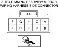 • If the auto-dimming mirror does not operate, inspect the terminal voltage. (See Terminal Voltage Table (Reference).)
