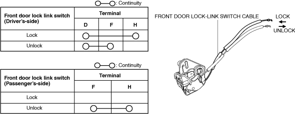 5.When the front door lock-link switch cable is pulled or pressed in, verify that the continuity is as indicated in the table.
