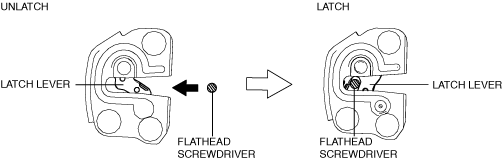 • When inspecting the latch side of the rear door latch switch, press in the latch lever using a flathead screwdriver and set it to the latched position.