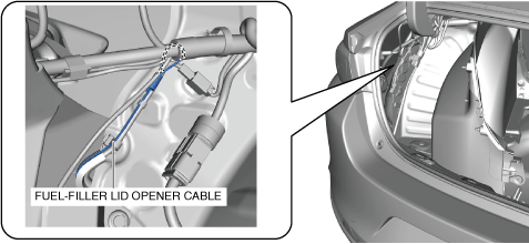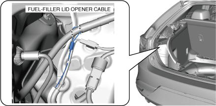 3.Pull the fuel-filler lid opener cable and open the fuel-filler lid.