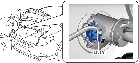 4.Move the fuel-filler lid actuator lever in the direction of the arrow shown in the figure.