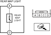 3.Apply battery positive voltage and connect the ground to the rear map light terminals as indicated in the table below and verify that each light turns on normally.