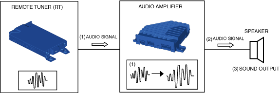 • The volume of the music constituent obscured by noise is corrected by the audio amplifier based on the cabin noise measured by the AudioPilot ® microphone and the vehicle speed signal sent from the CMU.