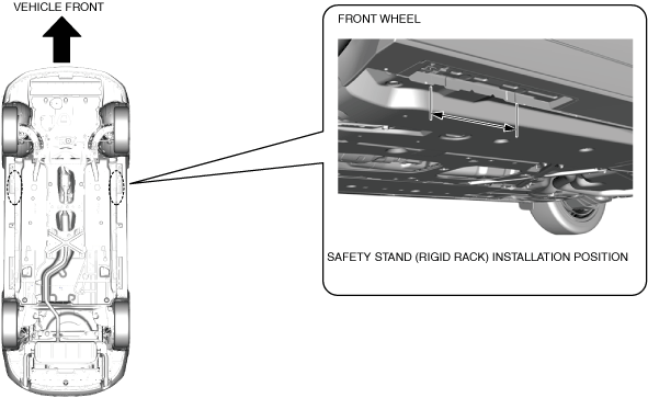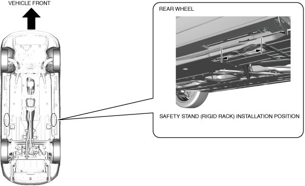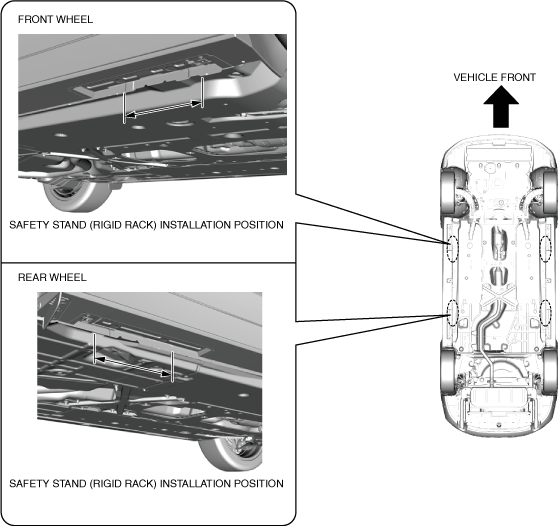 3.Install the safety stand (rigid rack) to the safety stand (rigid rack) installation positions of the right front and rear wheels shown in the figure.