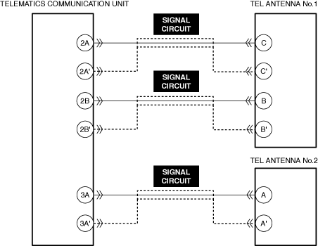 INSPECT TEL ANTENNA NO.1 SIGNAL CIRCUIT FOR SHORT TO POWER SUPPLY, SHORT TO GROUND, AND OPEN CIRCUIT