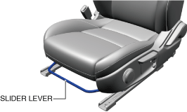 • After the front seat has been removed, if the slider lever is operated and the front seat is reinstalled with the left/right slide positions deviated, the adjuster unit could be damaged. After removing a front seat, do not operate the slider lever. (Manual seat)