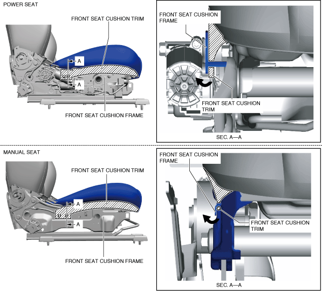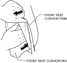 2.Press the front seat cushion pad inward while pulling the front seat cushion trim outward.