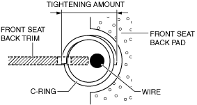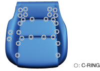 • If a C-ring is damaged when removing or installing the front seat cushion trim and the front seat cushion pad, it may not be possible to correctly install the front seat cushion trim and the front seat cushion pad. When removing or installing the front seat cushion trim and the front seat cushion pad, be careful not to damage the C-rings.