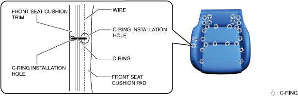 1.Align the C-ring installation holes of the front seat cushion trim with the C-ring installation holes of the front seat cushion pad and install the C-rings to the positions shown in the figure.