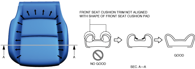3.Align the front seat cushion trim with the shape of the front seat cushion pad while pressing the front seat cushion trim outward.