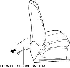 14.Move the front seat cushion trim in the direction of the arrow shown in the figure and remove the front seat cushion trim from the front seat cushion frame.